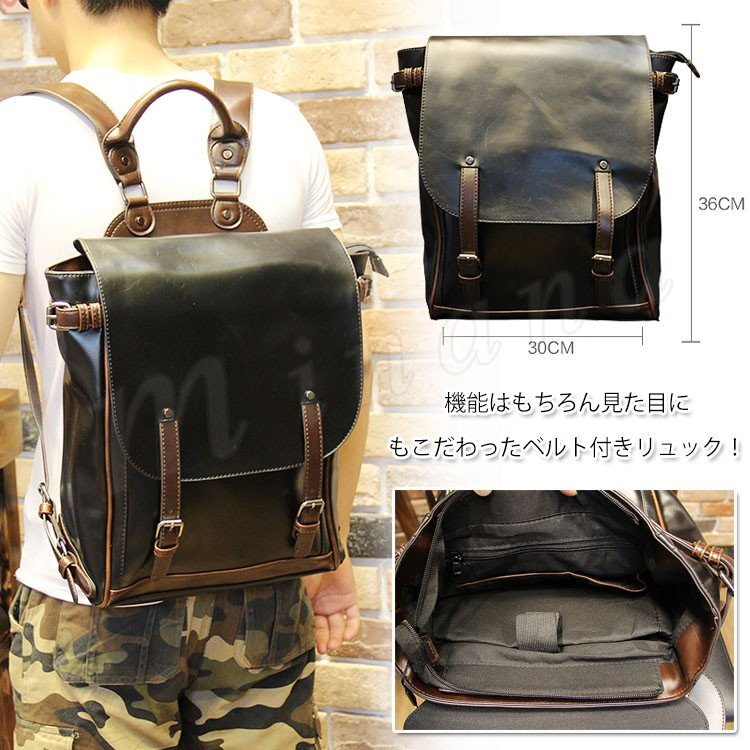 3WAYバッグ リュックサック デイバッグ メンズバッグ リュック PCバッグ 旅行バッグ カバン 鞄 合皮 通勤 通学 ベルト カジュアル トレロバ