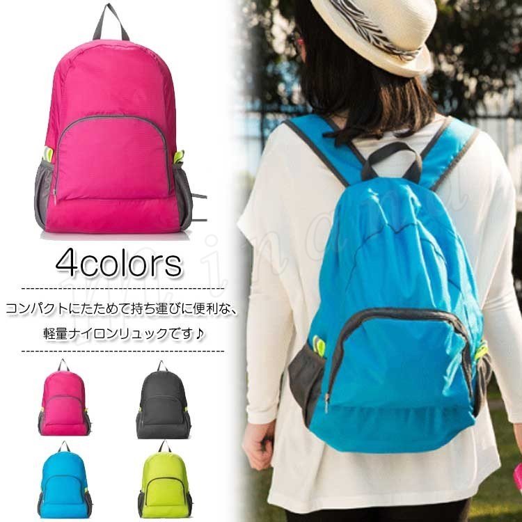 折りたためる軽量リュック バッグ コンパクト 男女兼用 ブルー グリーン グレー バラ色