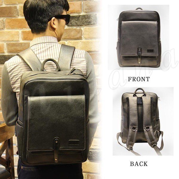 レザー デイパック バックパック リュック リュックサック リュックバッグ メンズ PU レザー 通勤 通学 リュック バッグ カバン スクエ