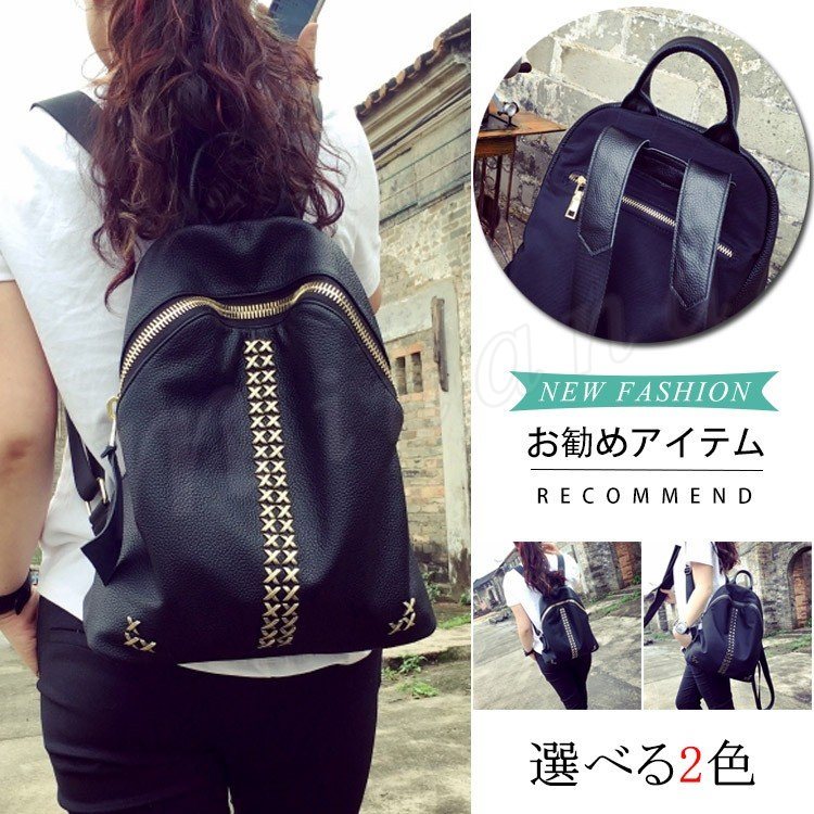 ストレート系 アメカジ系 リベット付き リュック メンズ リュックサック PU レザー バックパック デイパック メンズリュック バッグ 通学