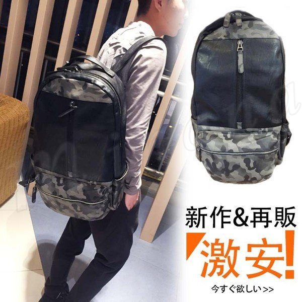 迷彩柄 リュック マウンテンパック メンズ PU レザー カモフラ柄 カモ柄 リュックサック バックパック デイパック メンズリュック 通学