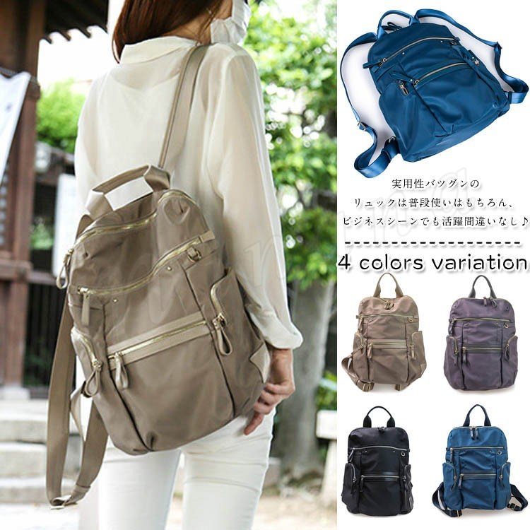 レディース カバン 鞄 リュックサック ナイロン 撥水加工 高級本革 大容量 実用性 ビジネス 機能性 旅行 普段使い シンプル ファスナーポケット