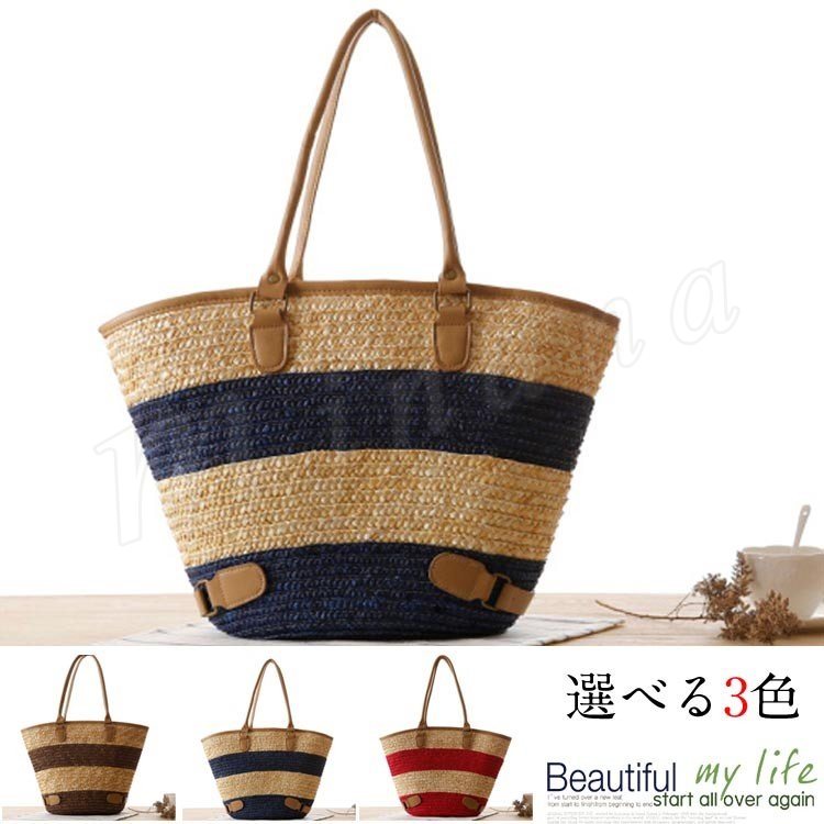 カゴバッグ トートバッグ レディース バッグ 麦わら素材 手編み かわいい 鞄 海 ママバッグ ナチュラル 母の日 2018 新春