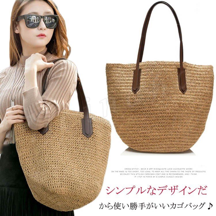 季節感溢れる。ストロー素材 かごバッグ かご トートバッグ レディース かごバッグ ショルダー 夏バッグ 夏 ショルダーバッグ トート リゾート 無地
