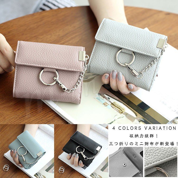 ミニ財布 極小財布 小銭入れ付き カード収納 全4色 パステルカラー 三つ折り レディース レザー調 合皮素材 プレゼント ギフト 財布 ウォ