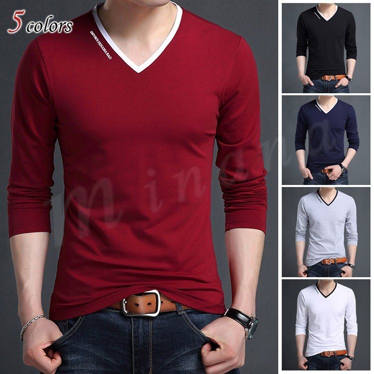 Tシャツ メンズ 長袖 ロゴT カットソー Tシャツ メンズ 大きいいサイズ Vネック インナー メンズ ストレッチ ゆったり 2018新作登場