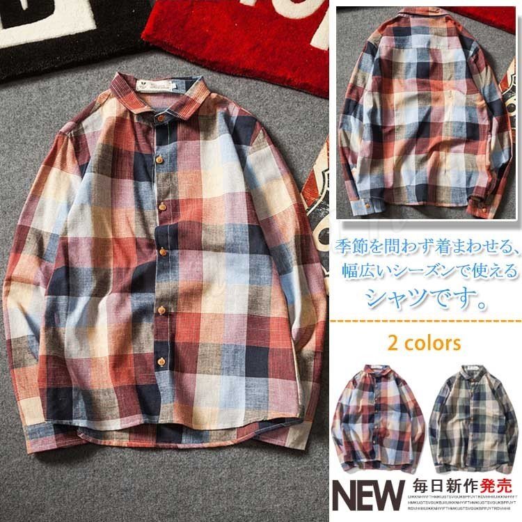 オープンカラーシャツリネン開襟シャツチェック柄シャツメンズシャツシャツ長袖トップスカジュアルシャツかっこいいゆったり開襟