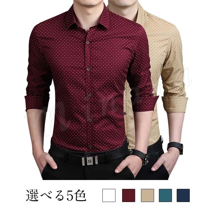 シャツ トップス 折襟 ドット柄 大きいサイズ 春 ブラウス フォーマル インナー 長袖 メンズファション 薄地 ドットシャツ