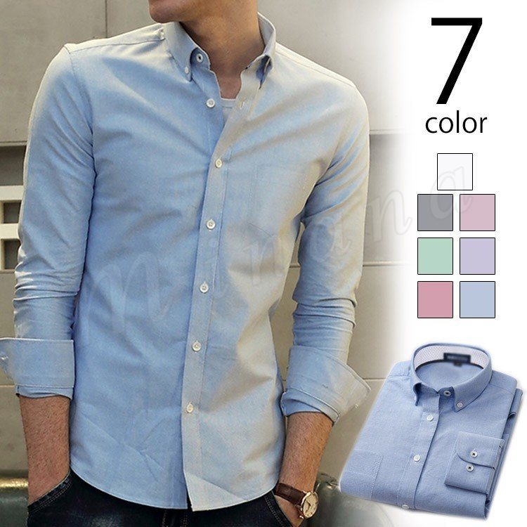 オックスフォード シャツ メンズ ポケット付き 長袖 ボタンダウンシャツ ショート丈 カジュアルシャツ 長袖シャツ 無地シャツ カラ
