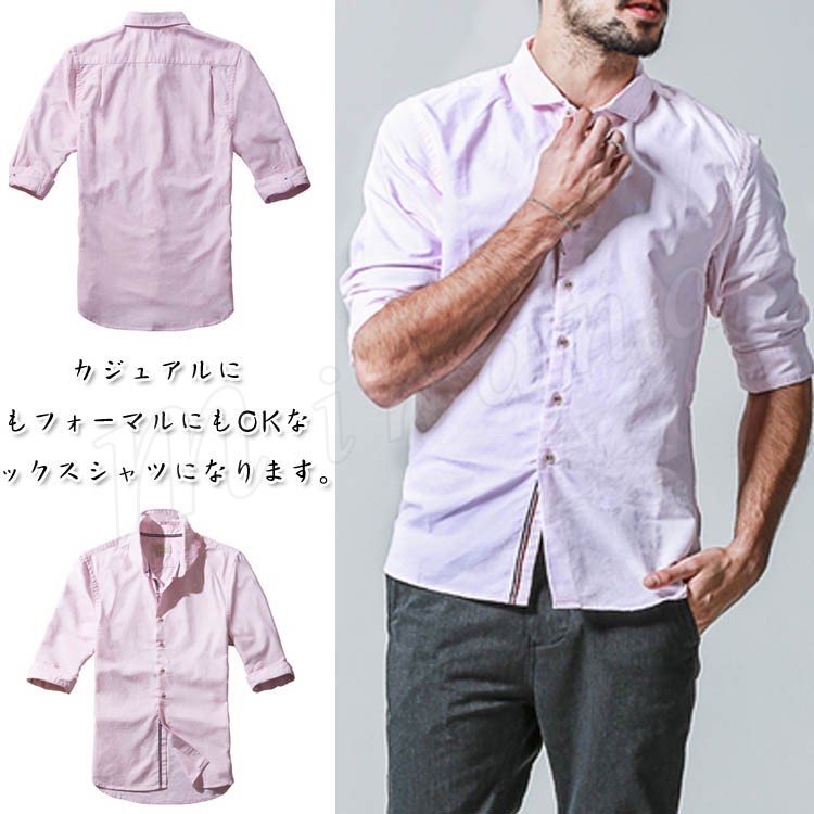 シャツシャツ7分袖シャンブレーシャツ通勤メンズシャツカジュアル無地リラックスメンズ