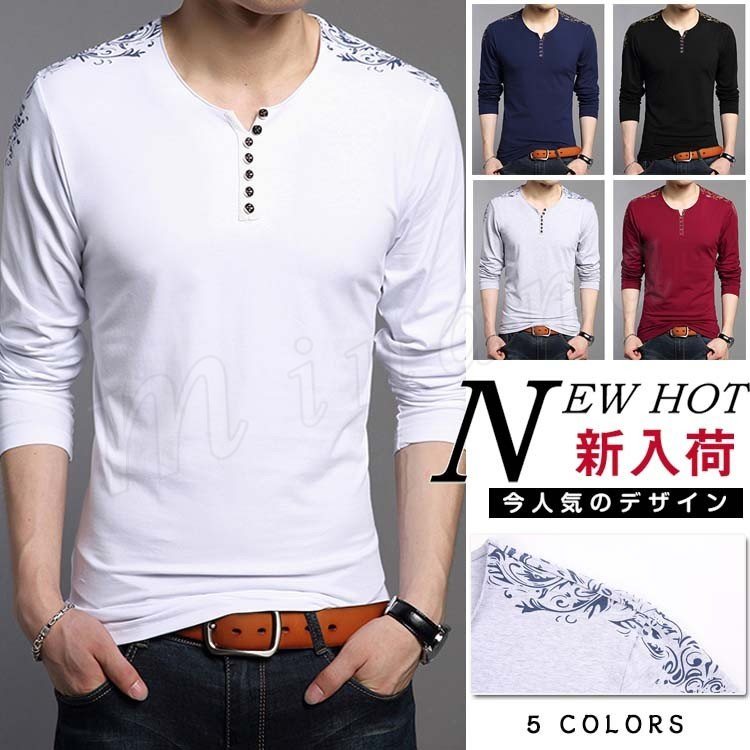 Tシャツ メンズ 長袖 ロンT カットソー 無地 Vネック ロングTシャツ シンプル インナー フライス ストレッチ トップス