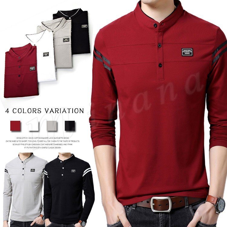 2018秋新作 ポロシャツ メンズ Tシャツ 長袖 立ち襟 細身 スリム カジュアル かっこいい きれいめ トップス 男性用 春秋 おしゃれ