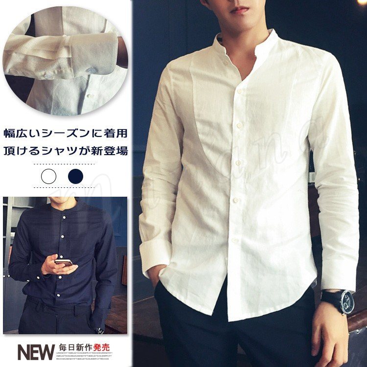 メンズシャツ長袖シャツ男性用アウター綿麻シャツ男性用ホワイトシャツトップス春服スタンドカラートップス白きれいめ黒