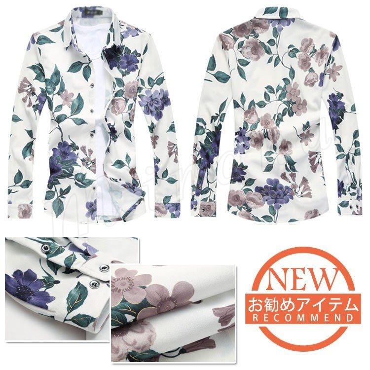 メンズ アロハシャツ 長袖シャツ ワイシャツ 和柄 花柄 スリム カジュアルシャツ ワイシャツ 大きいサイズ 秋物