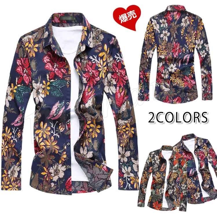 カジュアルシャツ メンズ アロハシャツ 長袖シャツ 花柄 和柄 ワイシャツ お兄系シャツ 大きいサイズ 秋物 秋 新作 父の日 ギフト
