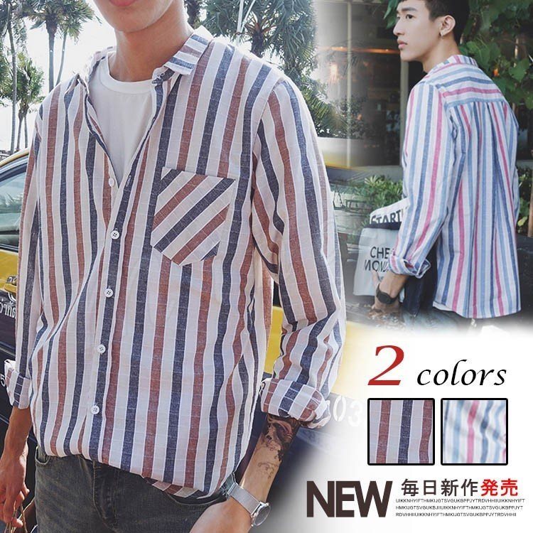 リゾート風 シャツ 長袖 シャツ トップス メンズ ボーダー柄 長袖シャツ ストライブ柄 カジュアルシャツ ウエスタンシャツ 春服 春物
