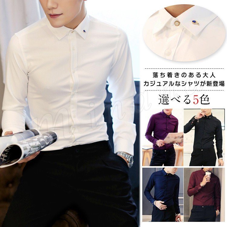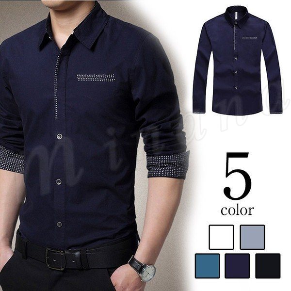 シャツ 折襟 プリント ビジネスシャツ メンズファション インナー フォーマルシャツ 長袖 トップス カジュアルシャツ 薄地 ビジネ