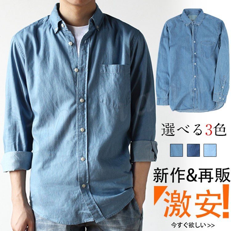 ボタンダウン デニムシャツ 長袖 シャン デニム カジュアルシャツ 長袖 ウエスタンシャツ アメカジ メンズ
