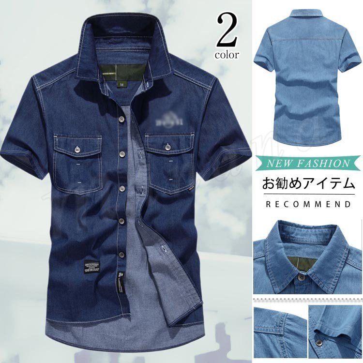 夏新作メンズ半袖デニムシャツ大きいサイズゆったりカジュアルシャツジーンズ男性用カッコイイファッション薄手おしゃれ