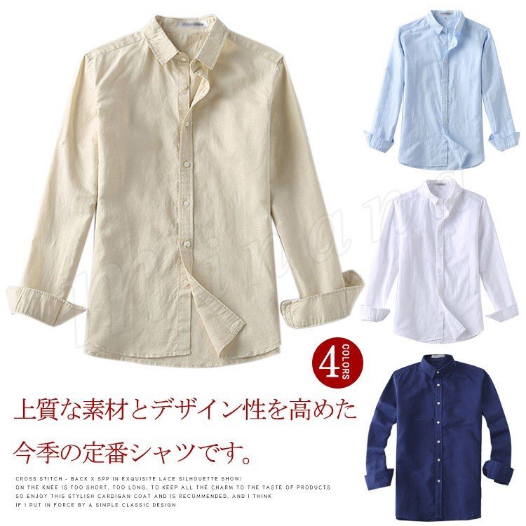 メンズシャツ シャツ メンズ リネンコットンシャツ リネンシャツ 綿 麻 シャツ 無地 長袖 トップス カジュアルシャツ 薄手 春 秋