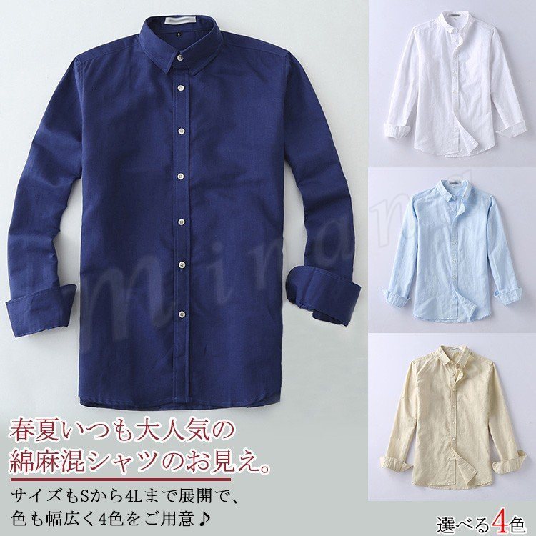 綿麻混の生地で快適!リネンコットンシャツ メンズシャツ シャツ メンズ リネンシャツ 綿 麻 シャツ 無地 長袖 トップス カジュアルシャツ 薄手 春