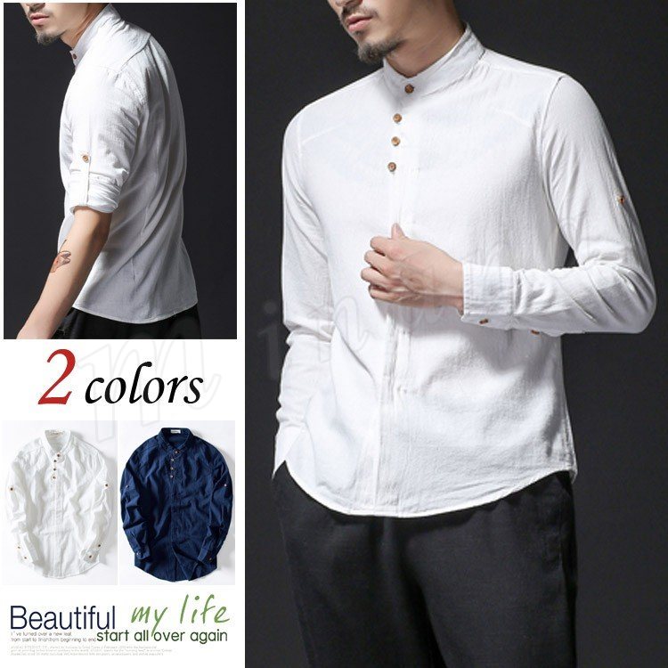 シャツ 無地 長袖 折襟 スリム ビジネスシャツ スリム 胸ポケット飾り メンズファション フォーマル 出勤 インナー トップス 上