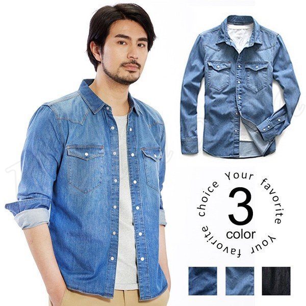 ジャケット シャツ デニムシャツ トップス アウター メンズファション 長袖 無地 胸ポケット飾り ウエスタンシャツ 折襟 デニム