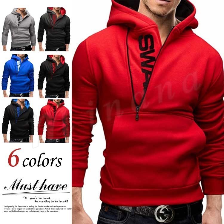 2017 メンズ 秋 新作 パーカー トレーナー ジップアップパーカー ボリュームネック スウェット 長袖
