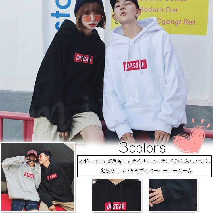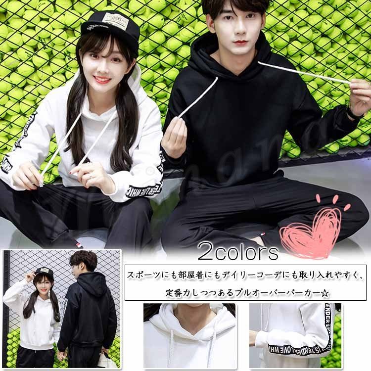 ペアルック カップル パーカー メンズ レディース 大きいサイズあり 白 黒 スウェット リブ裾 春服 トップス トレーナー プルオーバー