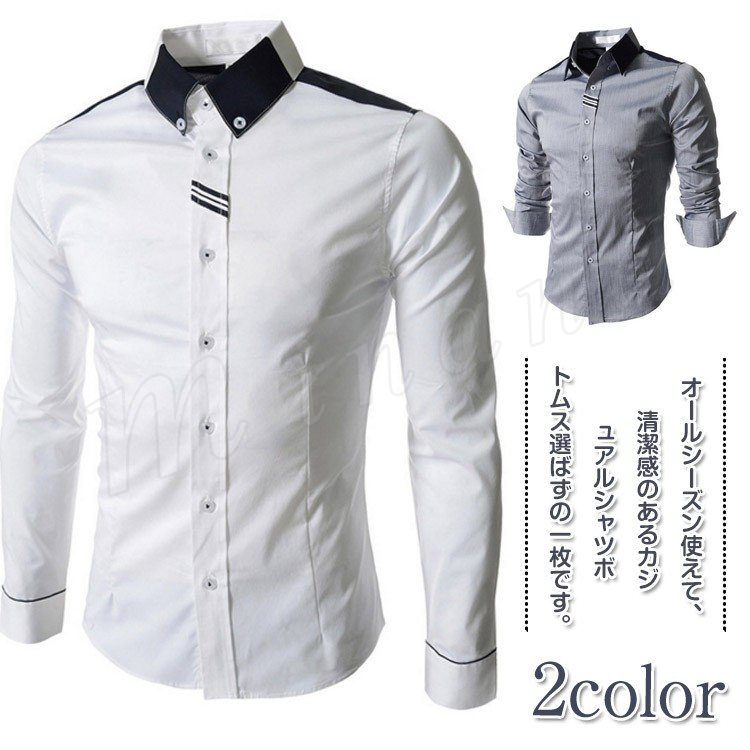 カジュアルシャツ メンズ 長袖シャツ ワイシャツ 無地 シャツ 細身 スリム お兄系 大きいサイズ 秋 秋物