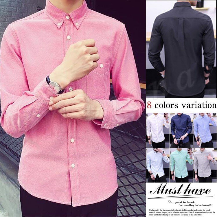 メンズシャツ平襟長袖シャツ長袖カジュアルシャツワイヤーカラーテープシンプル長袖オックスフォードシャツシックシャツボタンダウンワイシ