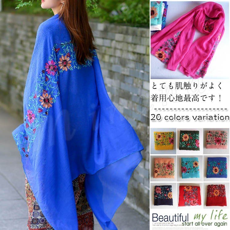 ストール UVカット スカーフ マフラー ストール フラワー柄 花 ニット ボレロ 刺繍 大判ストール 大きい レディース 春夏