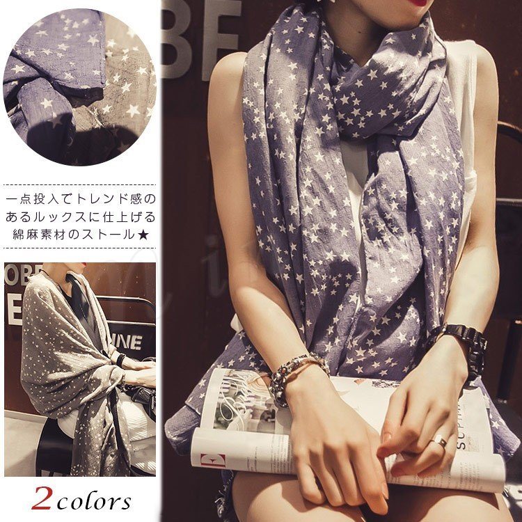 スター柄星柄大判ストールポリエステルユニセックスリネンストールストール大判ショールマフラーメンズレディース春夏薄手秋冬