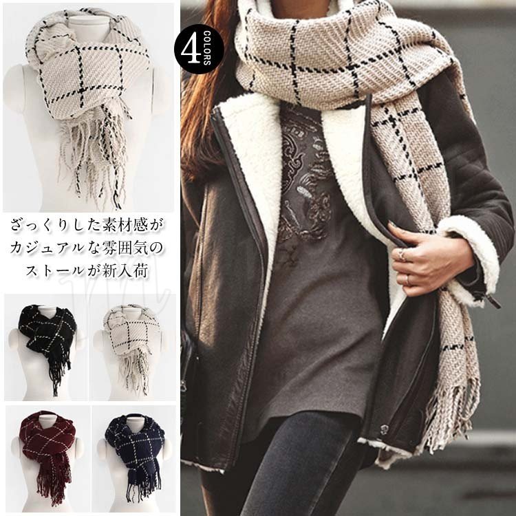 大判ストール チェック柄 ストール マフラー 大判サイズ フリンジ 肩かけ 膝かけ ブランケット 防寒 レディース
