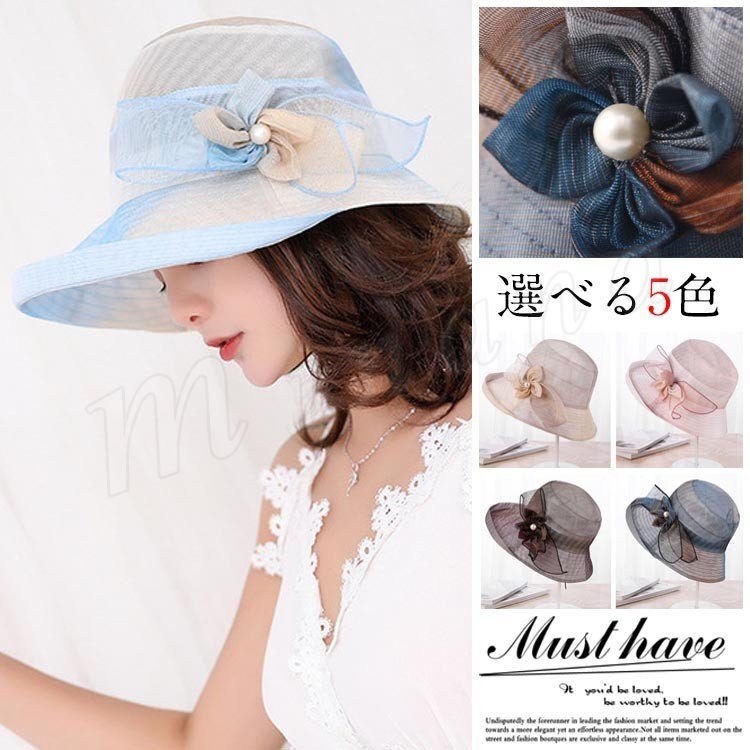 ハット 帽子 レディース サイドリボン エレガント 可愛らしい 透け感 涼しげ 日よけ対策 おしゃれ