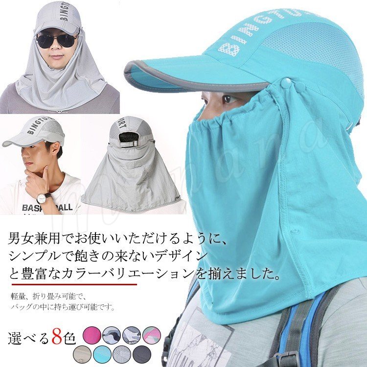 日よけ帽 UVカット 紫外線帽子 日焼け防止 帽子 紫外線対策 日焼け防止 3way 超軽量 速乾 防水 フェイスカバー付き 男女