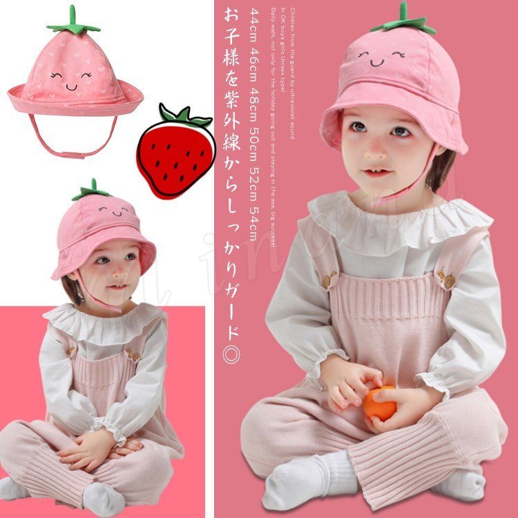 イチゴ 苺 UVカット帽子 キッズ 帽子 子供用 帽子 サファリハット 赤ちゃん ベビー ハット 女の子 男の子 UVカット ハット ジュニア