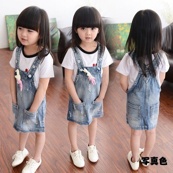 デニム サロペット サスペンダー デニムワンピース オーバーオール オールインワン ダメージ 夏 デニムワンピース 子供ワンピース 子供服