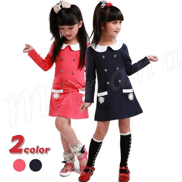 子供服 セーラー風ワンピース 女の子 キッズ ベビー 長袖ワンピ マリン風 幼稚園 ガールズ 可愛い 誕生日お祝い プレゼント 子どもドレ