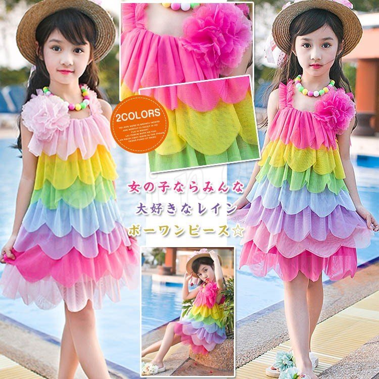 レインボー ワンピース 女の子 子供ワンピース 子供ドレス フォーマル 結婚式 発表会 女の子 子供服 フォーマルドレス フラワーガール ビー