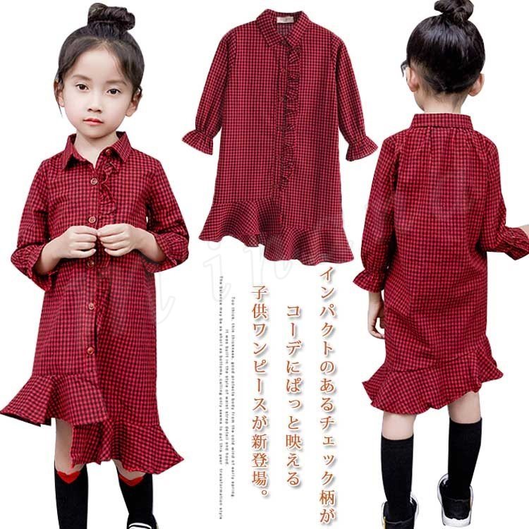 チェック柄 シャツワンピース ワンピース 子供 子供ワンピース ロングシャツ シャツワンピ 長袖 女の子 可愛い ワンピース 通学 発表会 入学式 入