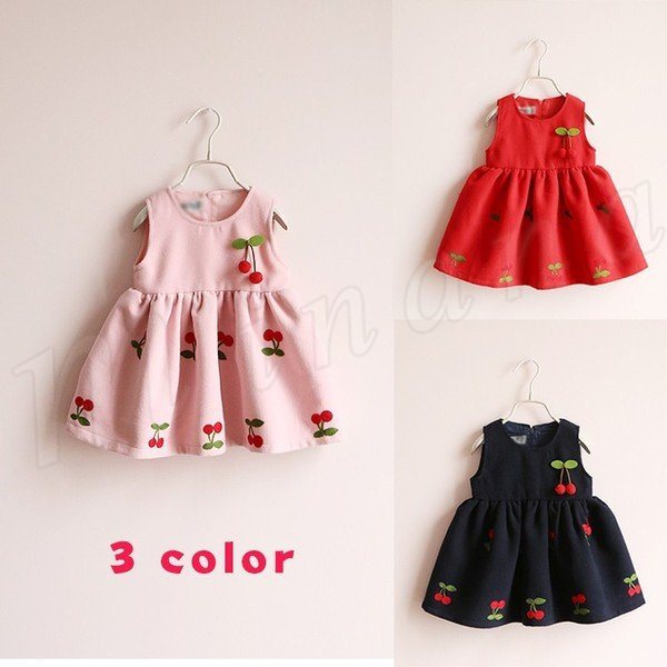 子供 ワンピース 袖なし 刺繍 フレア Aライン インナー ベスト さくらんぼ模様 ミニワンピ ショートワンピ クルーネック