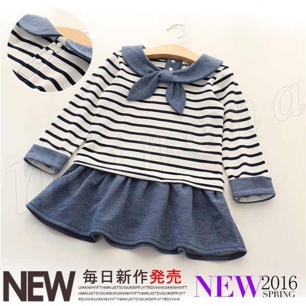 ワンピース 長袖 プルオーバー クルーネック ボーダー柄 ショートワンピース ミニワンピ 折襟 丸襟 子供服 キッズ キュート カジュアル