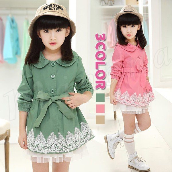 子供服 トップス 女の子 姫様 秋 長袖 ワンピース アウター Aライン フレア 花飾り ボタン コート ミディア バイカラー ファション