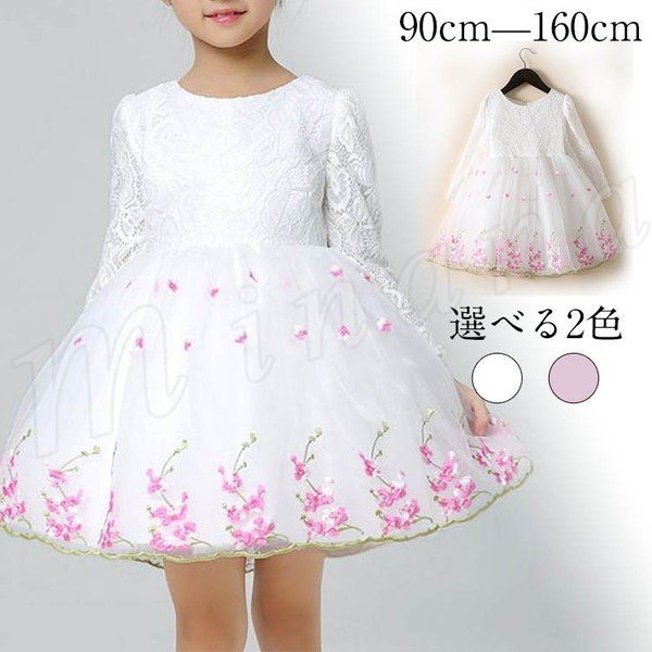 ワンピース レースワンピース チュチュ チュールワンピ 長袖 クルーネック バック大きいリボン飾り 子供ワンピ キッズ 防寒対策