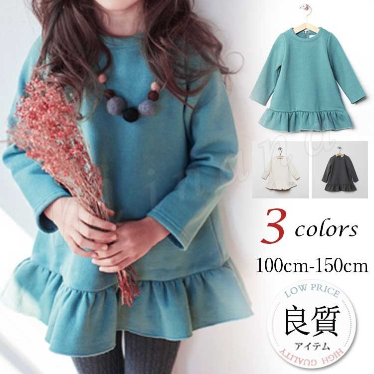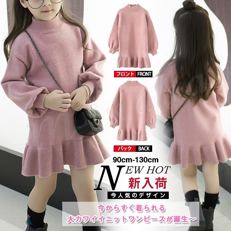 子供ワンピース ニットワンピース キッズ 女の子 ワンピース ニット ハイネック 子供服 キッズ ジュニア 春ワンピ フリル 長袖 無地 9