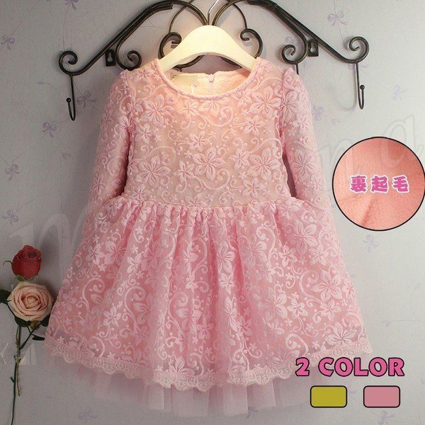 子供ワンピース 花柄 総レース ハーフ丈 チュチュワンピ 裏起毛 膝丈 姫様 厚地 Aライン クルーネック