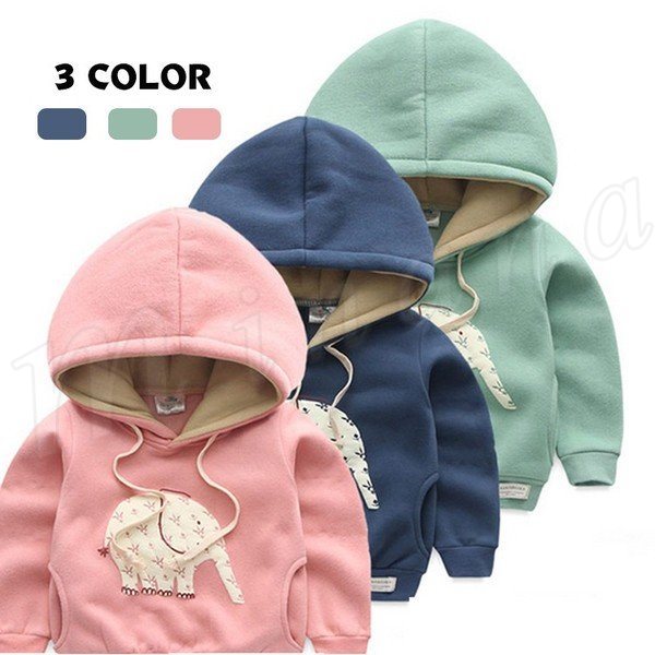 子供 パーカ フード付き プルオーバー Vネック プリント 象柄 長袖 リブ袖口 カジュアル 裏起毛 防寒 厚地 ショート丈 子供服