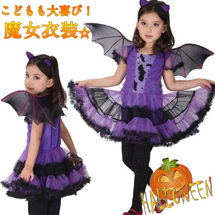 ハロウィン 衣装 コウモリ 魔女 子供 コスプレ 吸血鬼 コスチューム ドレス ワンピース 小悪魔 女の子 ハロウィン 悪魔 デビル 妖精