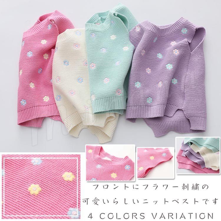 フロントにフラワー刺繍の可愛いらしいニットベスト 女の子ベスト 子供服 トップス スウィート 上品 エレガント シンプル 活発